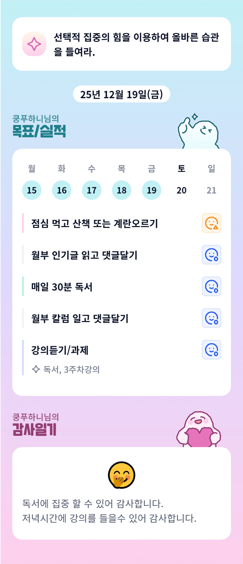 독서에 몰입~ 꾸준히 목표달성해 나가시는 하니님 화이팅입니다!