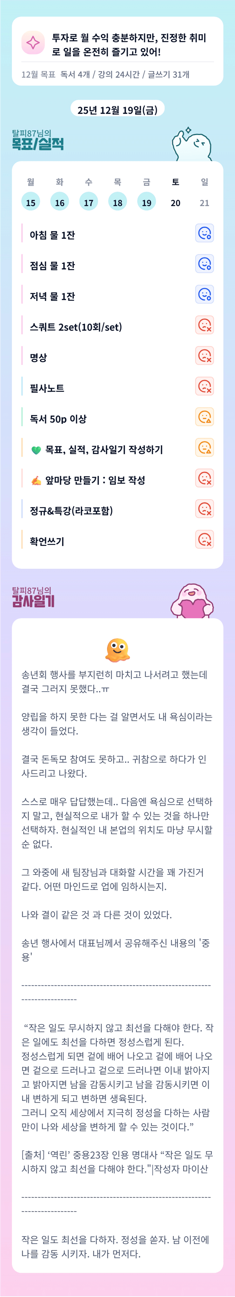 새삼 정신차려보니 어느새 또 한 번에 여러가지 해내려고 하고있는 제 자신을 발견했어요! 기간, 시간별로 우선순위가 중요하다는 걸 알면서도 ㅎㅎㅎㅎ 다시 돌아볼 수있어 감사한 시간이긴하더라구요 ㅎㅎ 합시다 중요한 것부터!