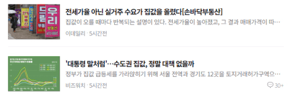 최근 부동산 기사에선, 규제에도 불구하고 집값 상승에 대한 기사와 더불어
