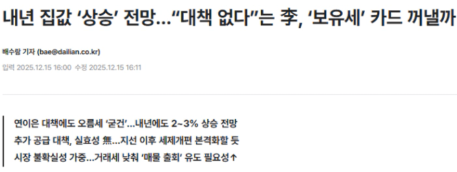 2026년을 코앞에 둔 지금 집값에 대한 전망도 기사화 되고 있습니다.
