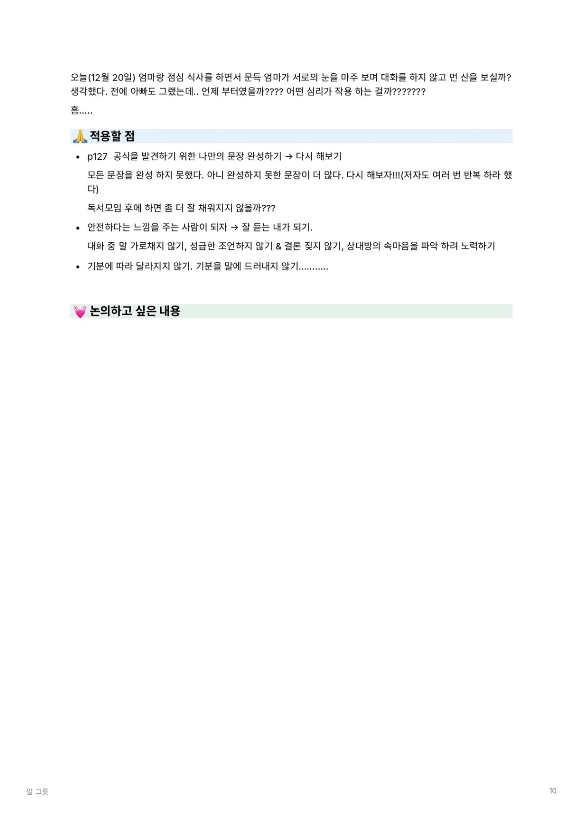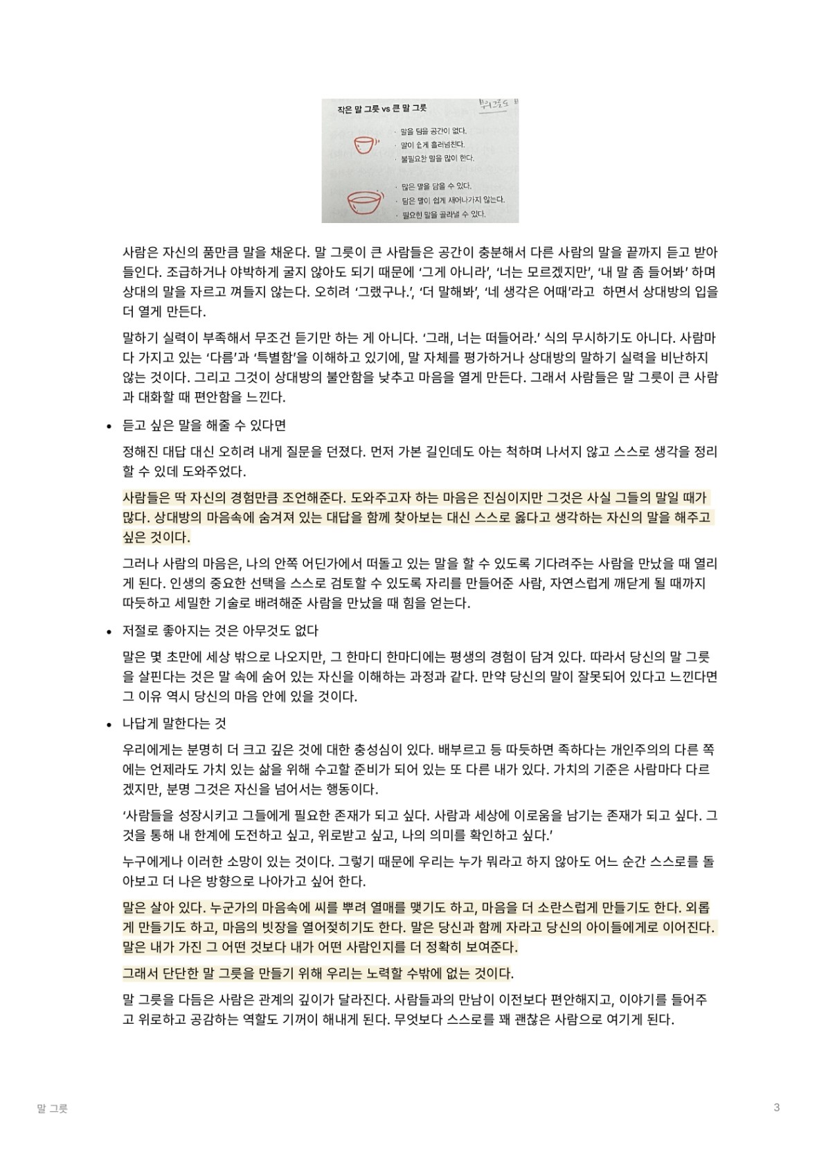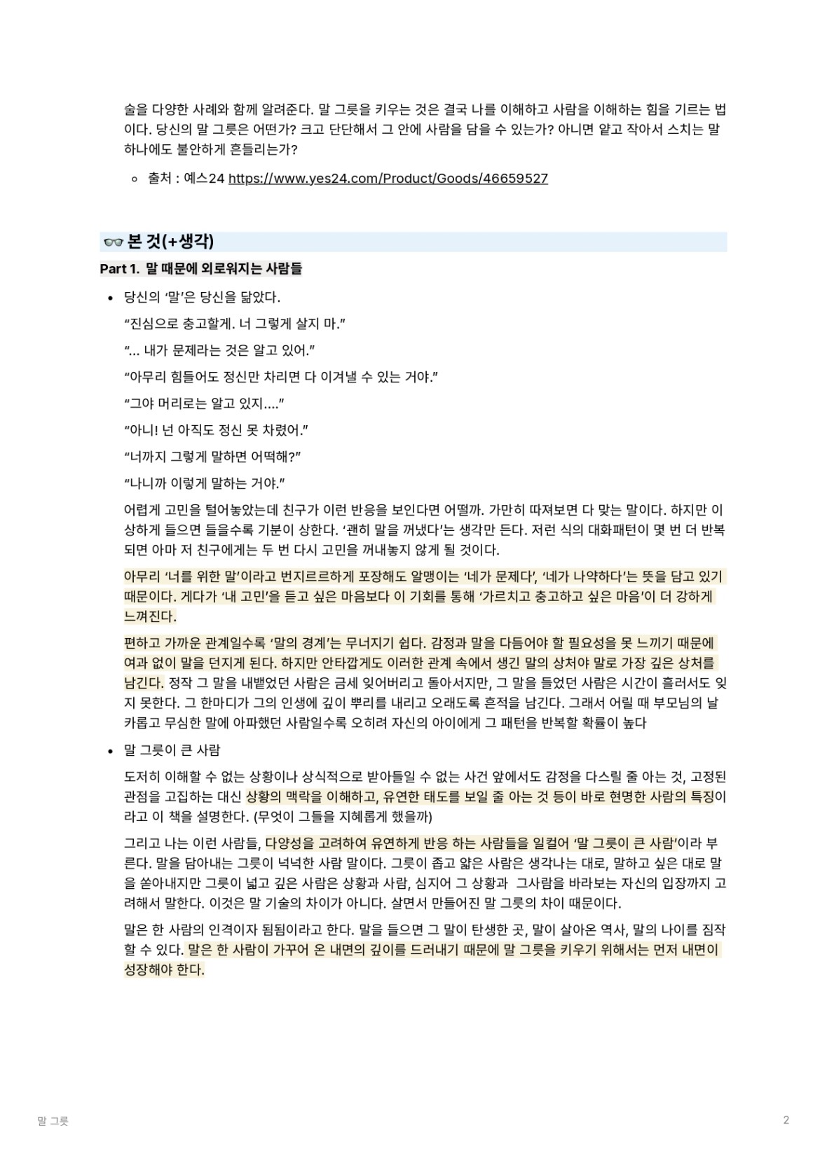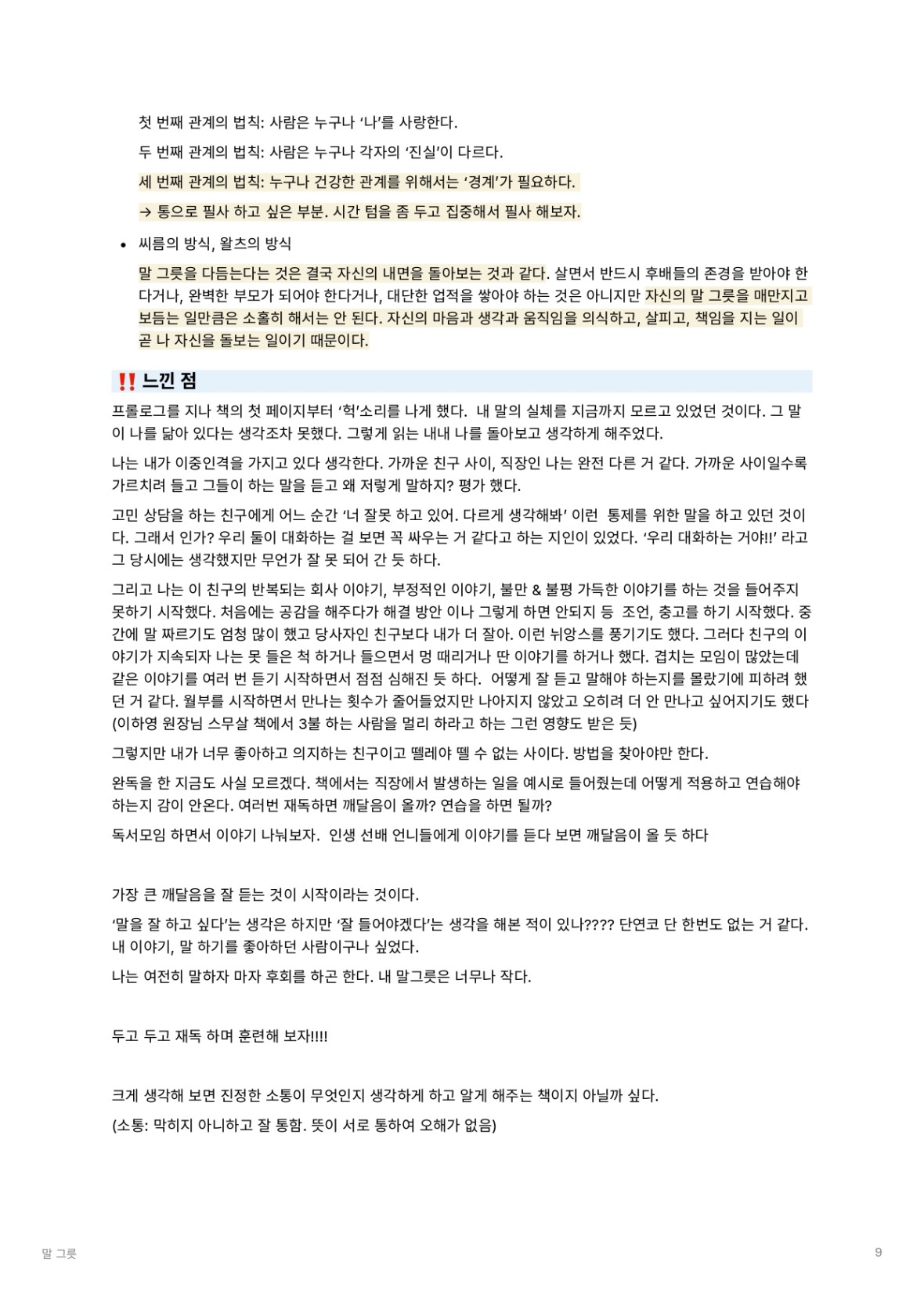 이 책 읽으면서 저도 처음부터 놀랐습니다. 그리고 정말 필요한 책이라고 생각했었어요^^ 애정이 있어 가깝다고 생각해서 어쩌면 표현이 서툴렀던게 아닐까 하는 생각을했어요. 배려심도 많고 그릇이 큰 조타님^^ 이 책으로 말그릇도 더 성장하길 응원합니다.^^
