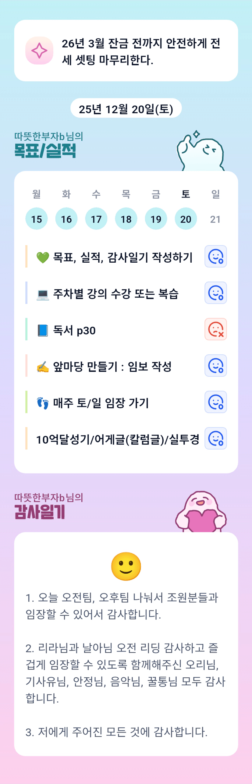 미니 임장 준비부터 실행까지 조원들 챙겨주시느라 바쁘셨을텐데 고생 많으셨습니다 😊 감사합니다!