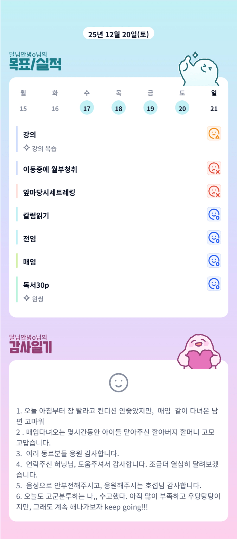 오늘 많은 일이 있으셨지요? 알찬 토요일 보낸 달님님 감사합니다 😄
