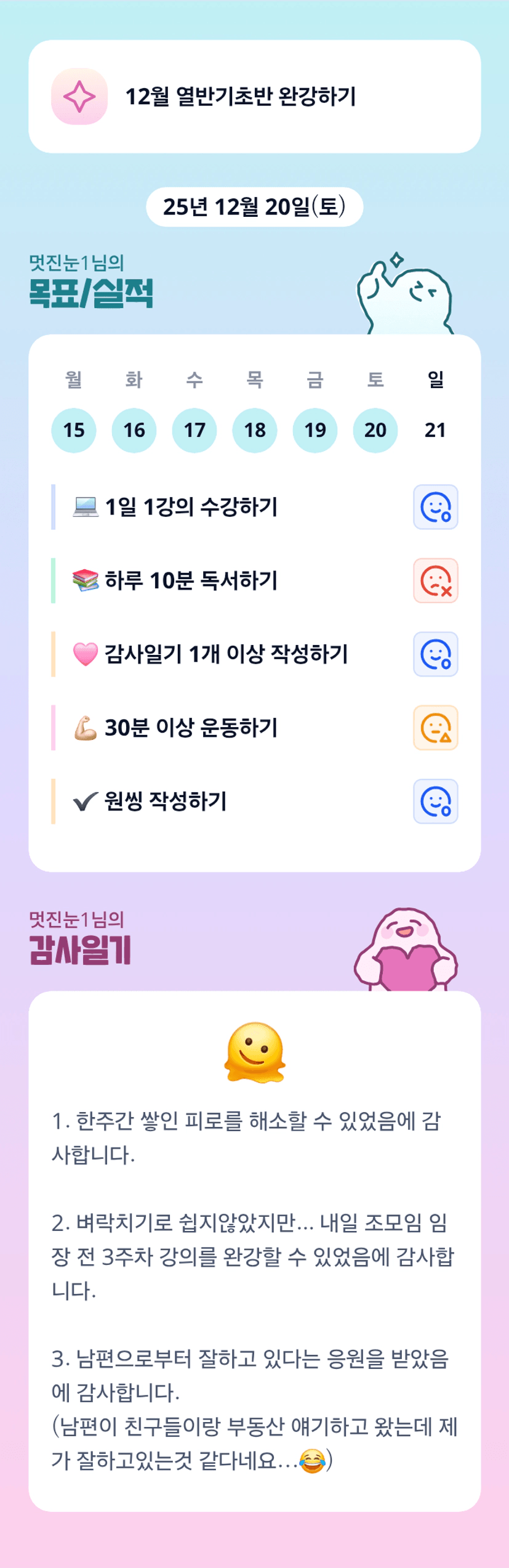 멋진눈님! 오늘 하루도 고생 많으셨습니다!!! 내일 분위기 임장가시는군요?!ㅎㅎ 화이팅입니다!!