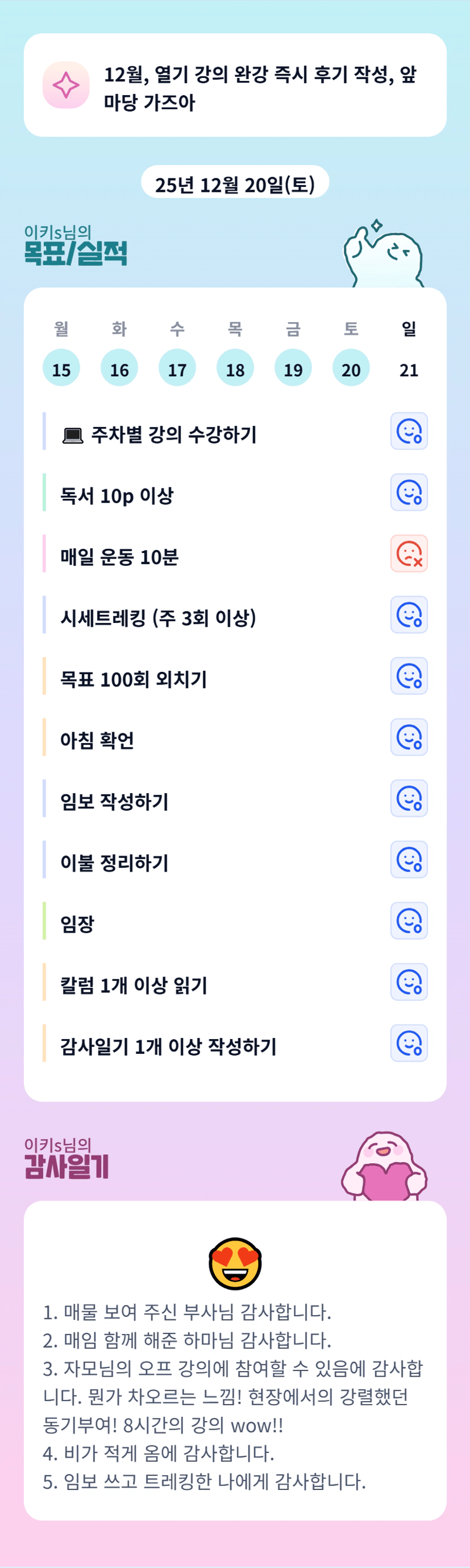 오늘도 충만한 하루를 보낸 이키님께 기립박수를 보냅니다~!