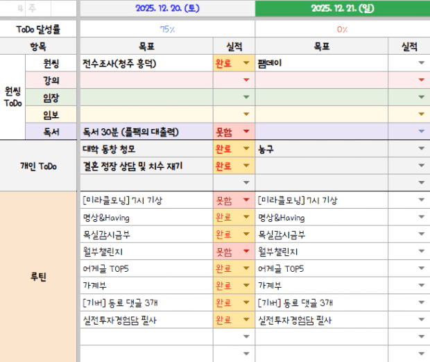 [정의] 2025년 12월 21일 목표, 실적, 감사일기