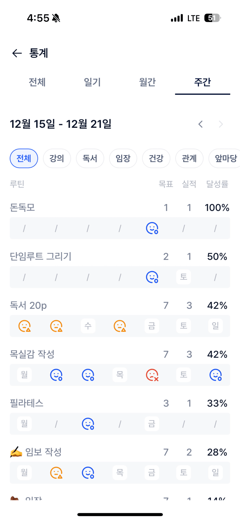 목실감 저녁/아침에 꼭 작성하도록 하자.