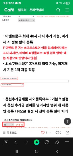아래 사진과 같이 유플랫프로그램(프유) 네이버 환경설정에서 최소구매수량에 숫자나 빈칸이 들어가있는지 한번 확인부탁드립니다ㅎ