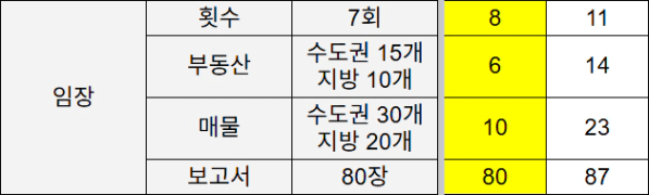 1회차 혼자 매임 부동산 8 매물 21 / 2회차 랄라님과 함께 매임 부동산 10 매물 27