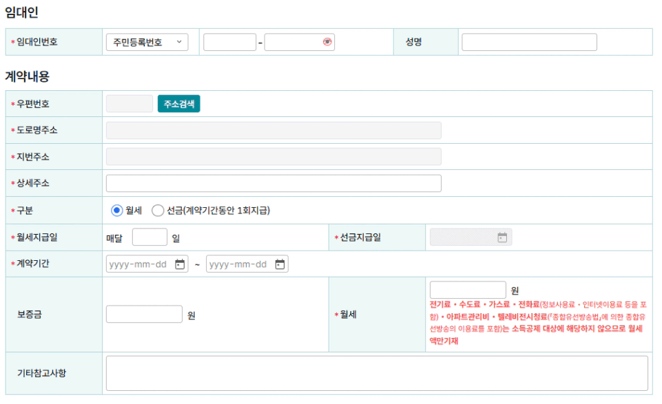 그리고 임차인과 임대인 정보를 입력합니다!!
