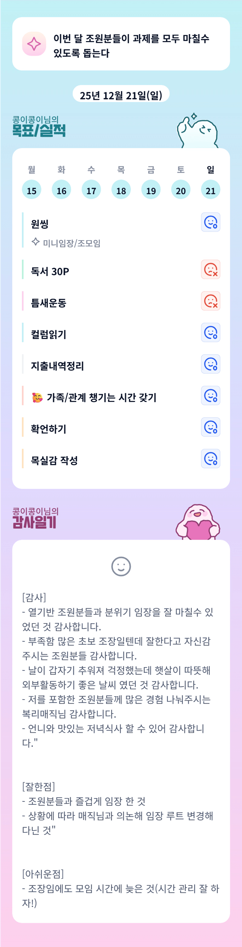 12월을 열기로 마무리 하시는 여정 화이팅입니다 ㅎ 다 잘 해내고 있는 콩이님 멋있다 👍