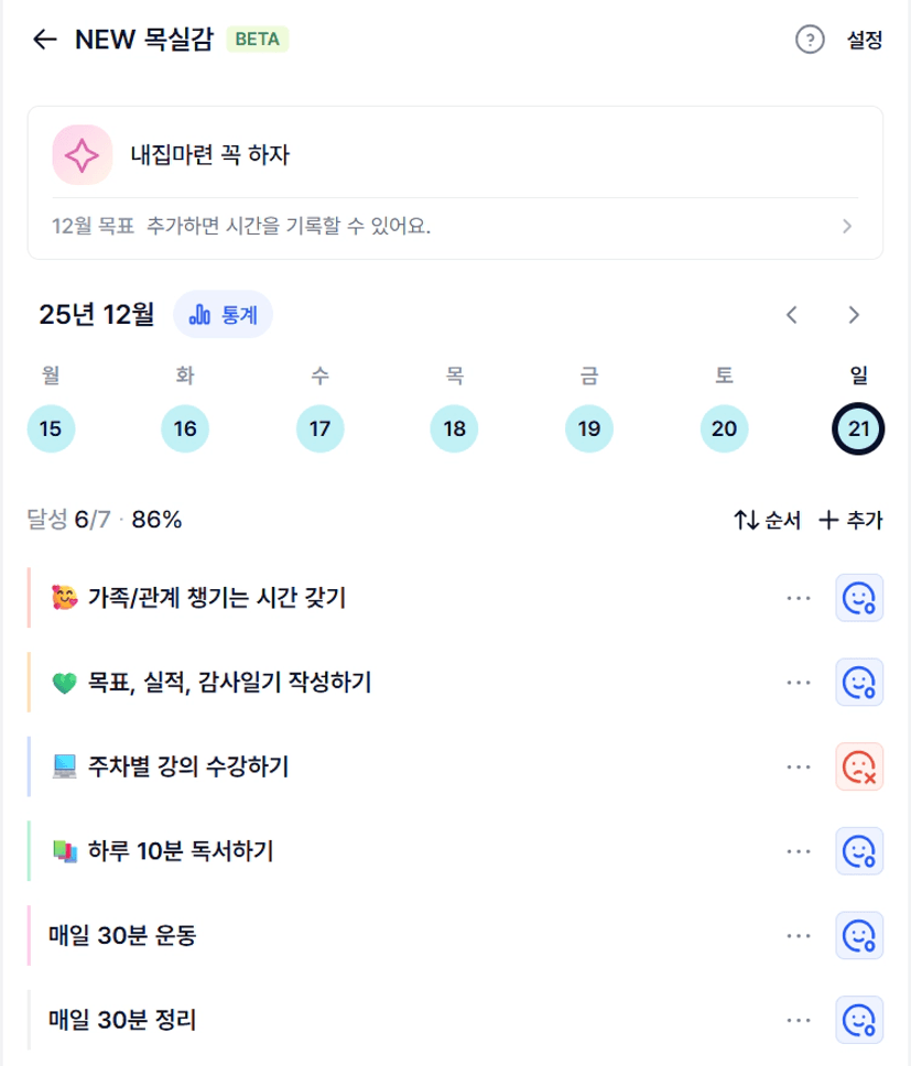 다음 날 부터 다시 새로운 마음으로 목실감 작성하기를 꼬옥 해주시기 바랍니다!