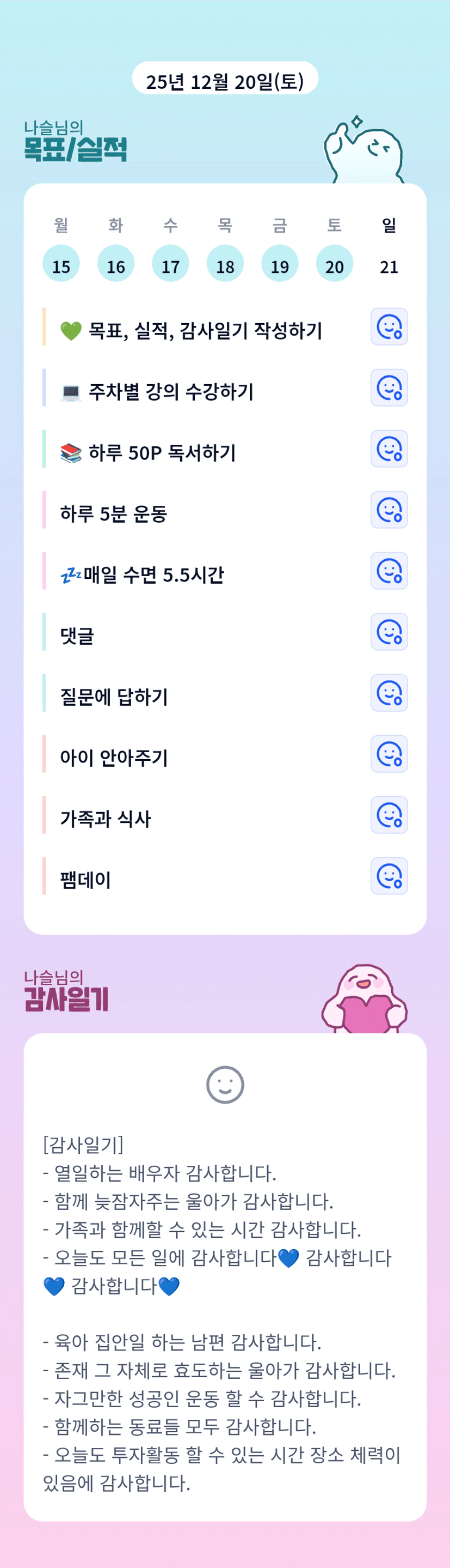 이 모든것을 다해낸 나슬님 진짜 멋져요!!ㅎㅎ 근데.. 수면시간.. 넘 작아요ㅠㅠㅠㅠ 건강건강!!