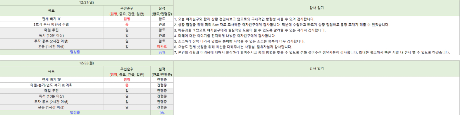 🌻12/22 목표, 12/21 실적 & 감사일기