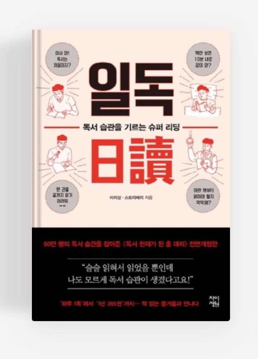 독서 습관의 기초를 잡기 위해 매일 읽는게 중요해요, 일독이죠. / 매일 독서한다는 뜻인가요? / 맞아요. 그리고 독서습관을 잡는 첫 번째 단계라는 뜻의 일독이지요. 30일동안 일독해보세요. 생각보다 책 읽는 즐거움이 클 테니까요