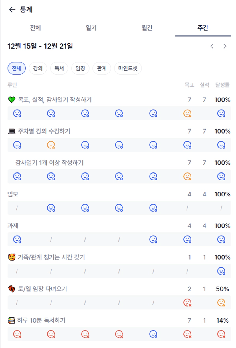 2️⃣ 이번 주 목실감을 작성하면서 느낀점과 더불어 한 주 스스로 어떻게 지냈는지 간단한 회고를 적어보아요 :)
