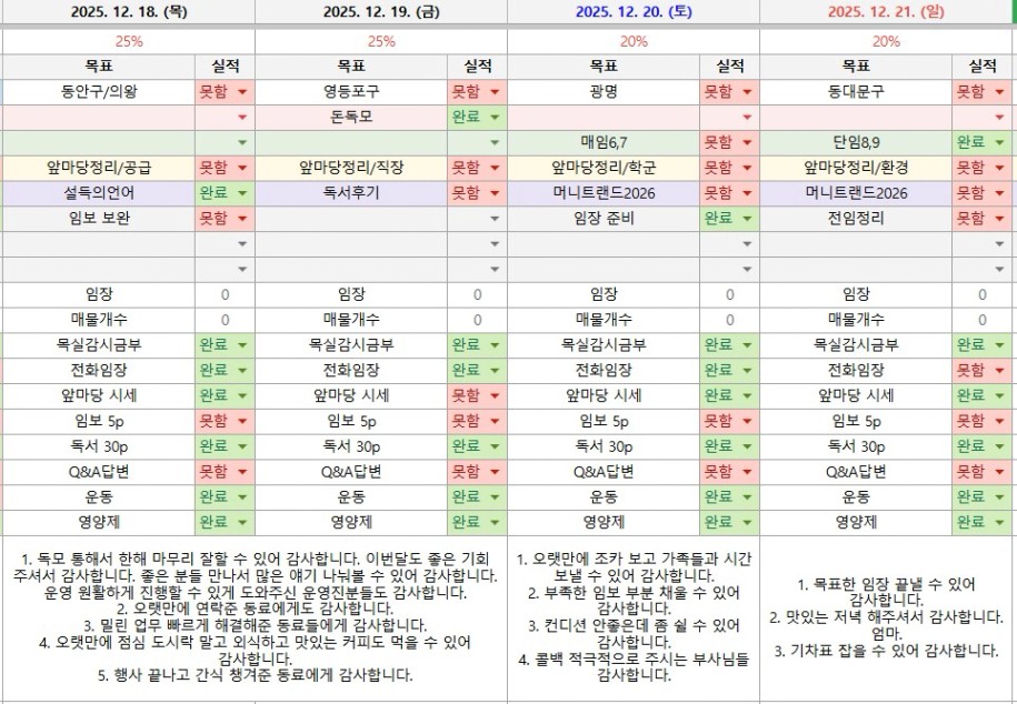 • 12월 셋째주 중점 추진사항: 돈독모, 앞마당 매임