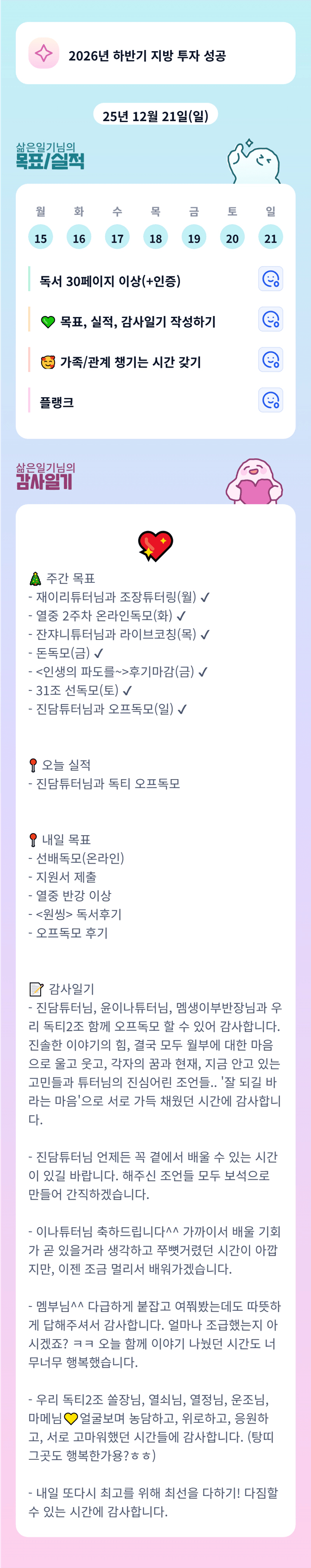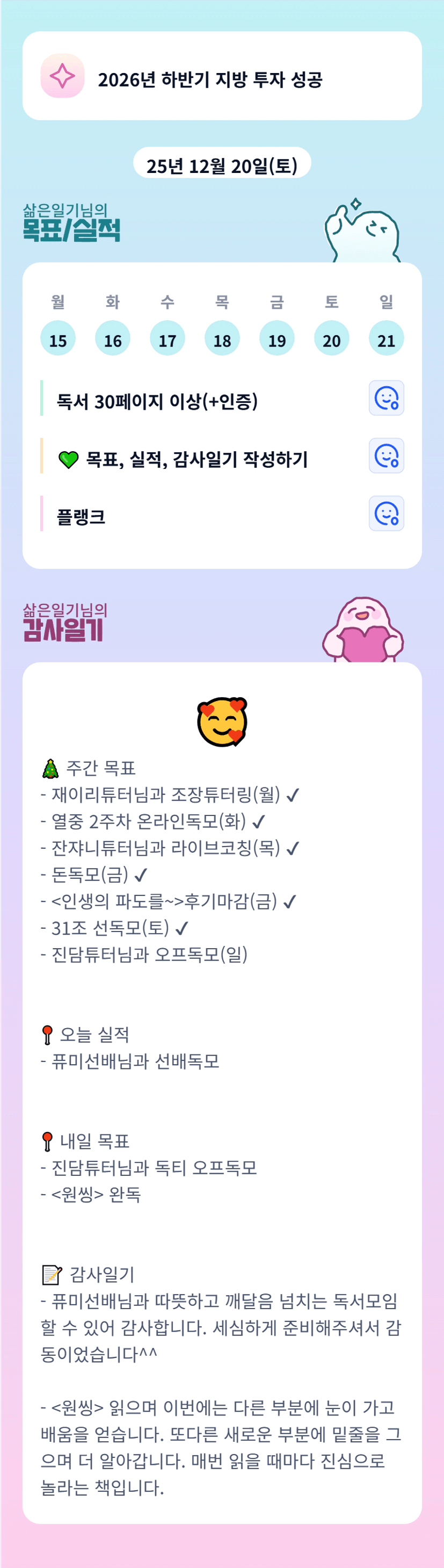 튜터님~~🩷 최고를 위해 최선을 다하시는 모습보며 저도 배웁니다^^ 멋진 튜터님 화이팅하세요!!!