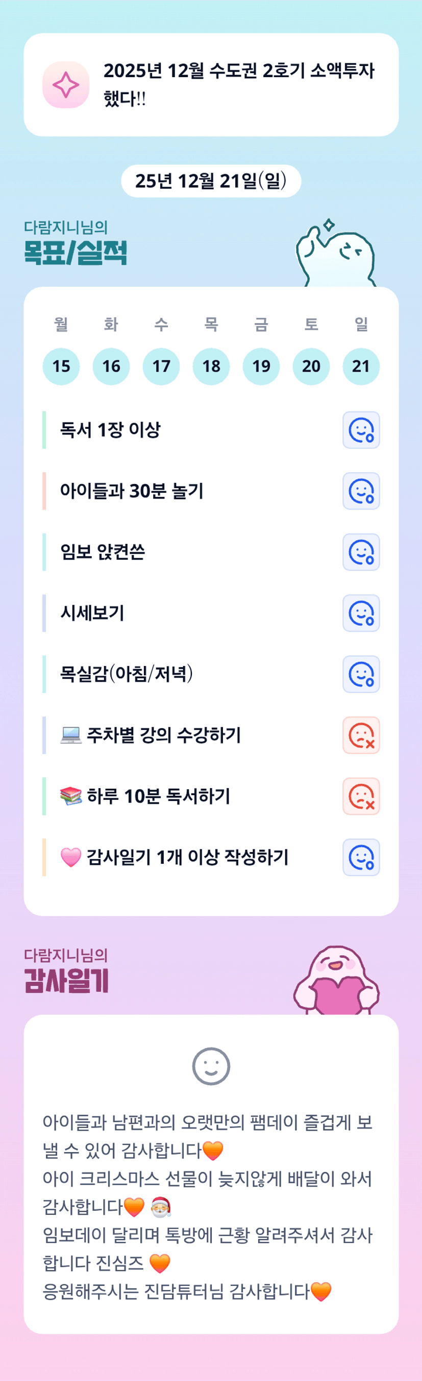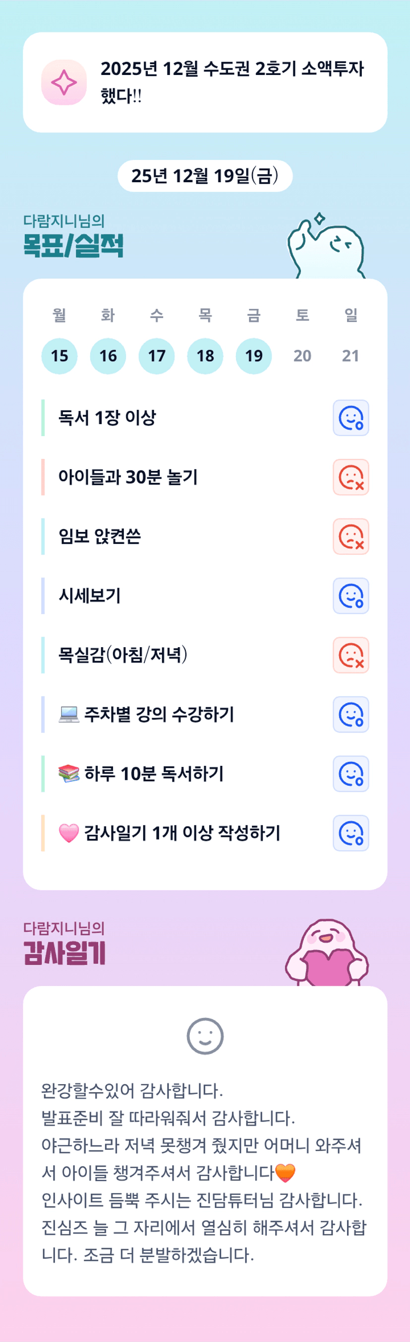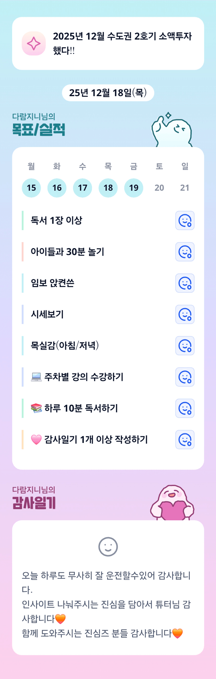 지니님 진짜 멋지게 해내시는 모습에 너무 부럽고 저도 꼭 도전해보고싶네요:) 이번주도 화이팅입니다♡
