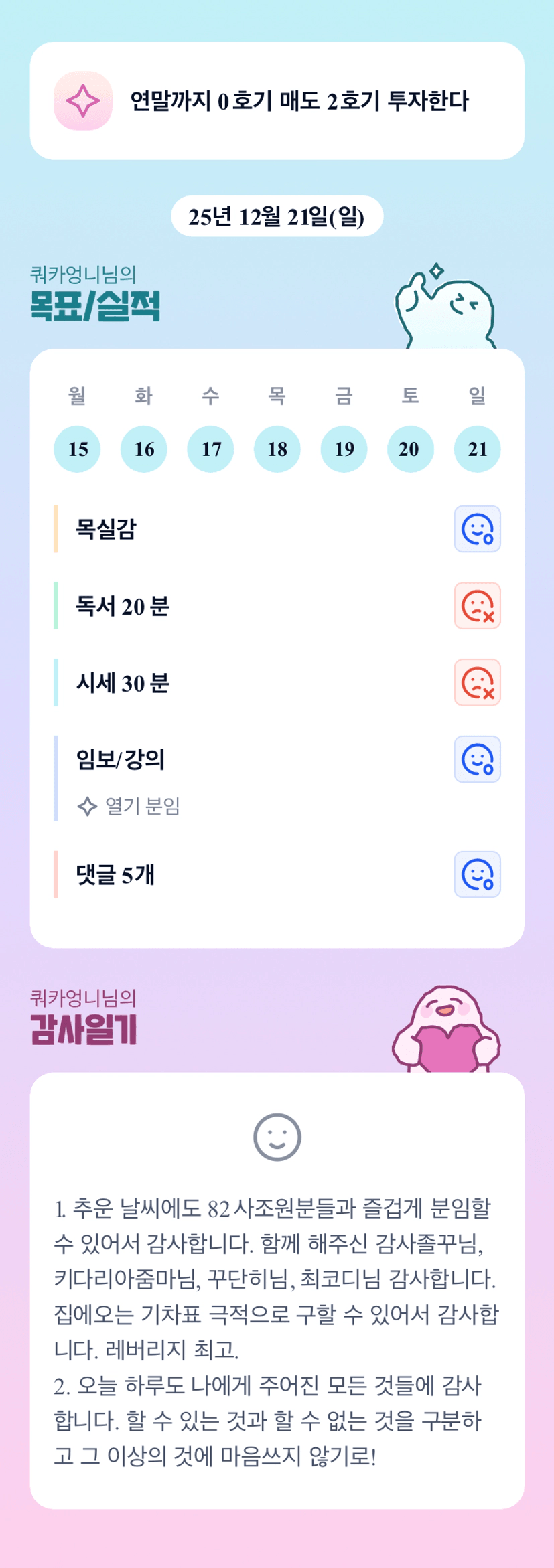 추운 날씨에 분임 넘 고생하셨어요 :) 오늘도 춥지만 힘내세요 ^^