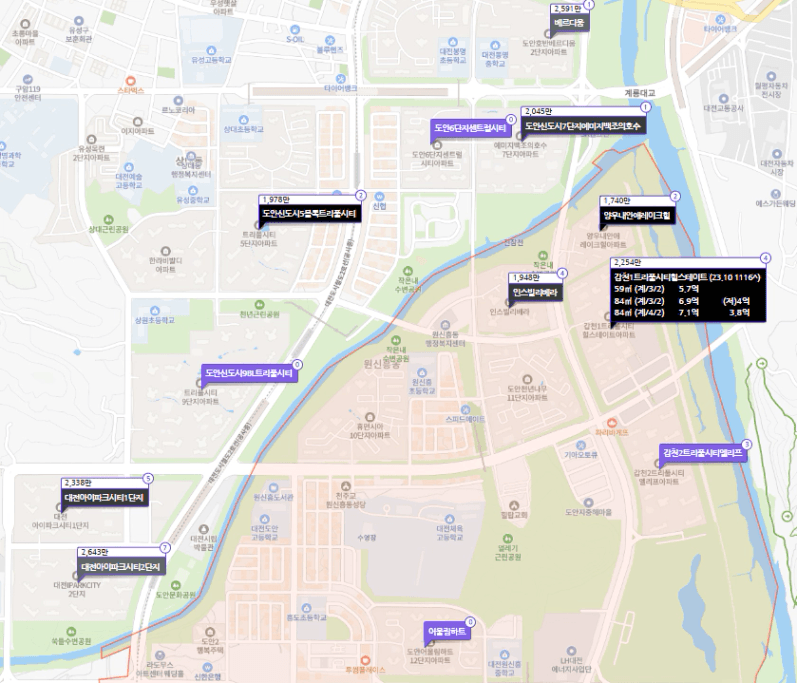 외곽 신규 택지인 도안 신도시도 꽤나 선호합니다