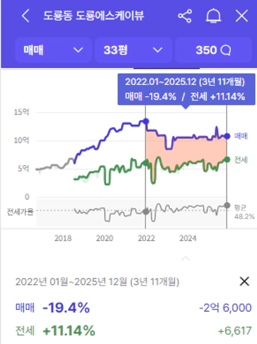 25년 공급으로 인해 매매, 전세가가 하락했다가