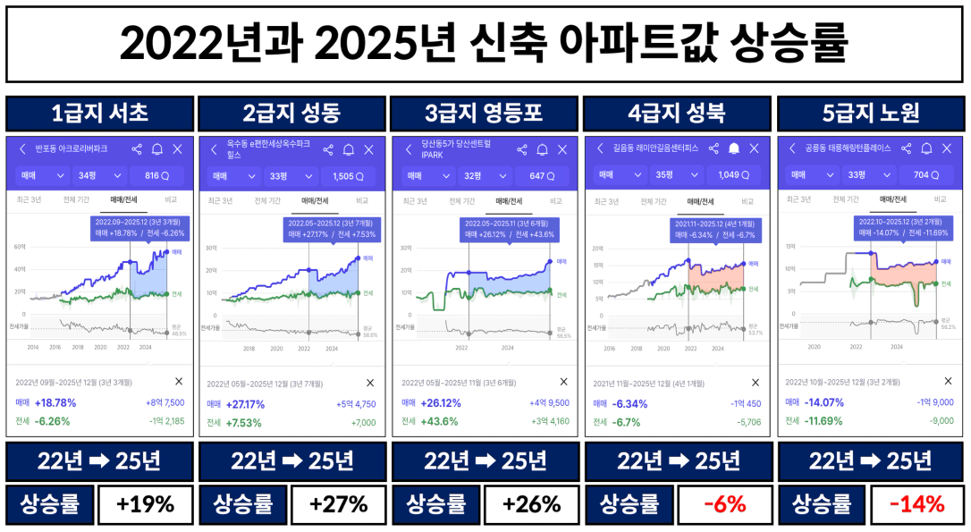 서울 1~3급지까지의 신축 랜드마크 단지들은
