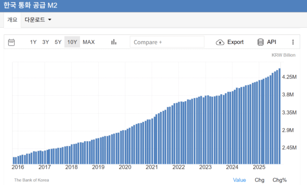 통화량이 증가하니까, 원화가치가 떨어지니까