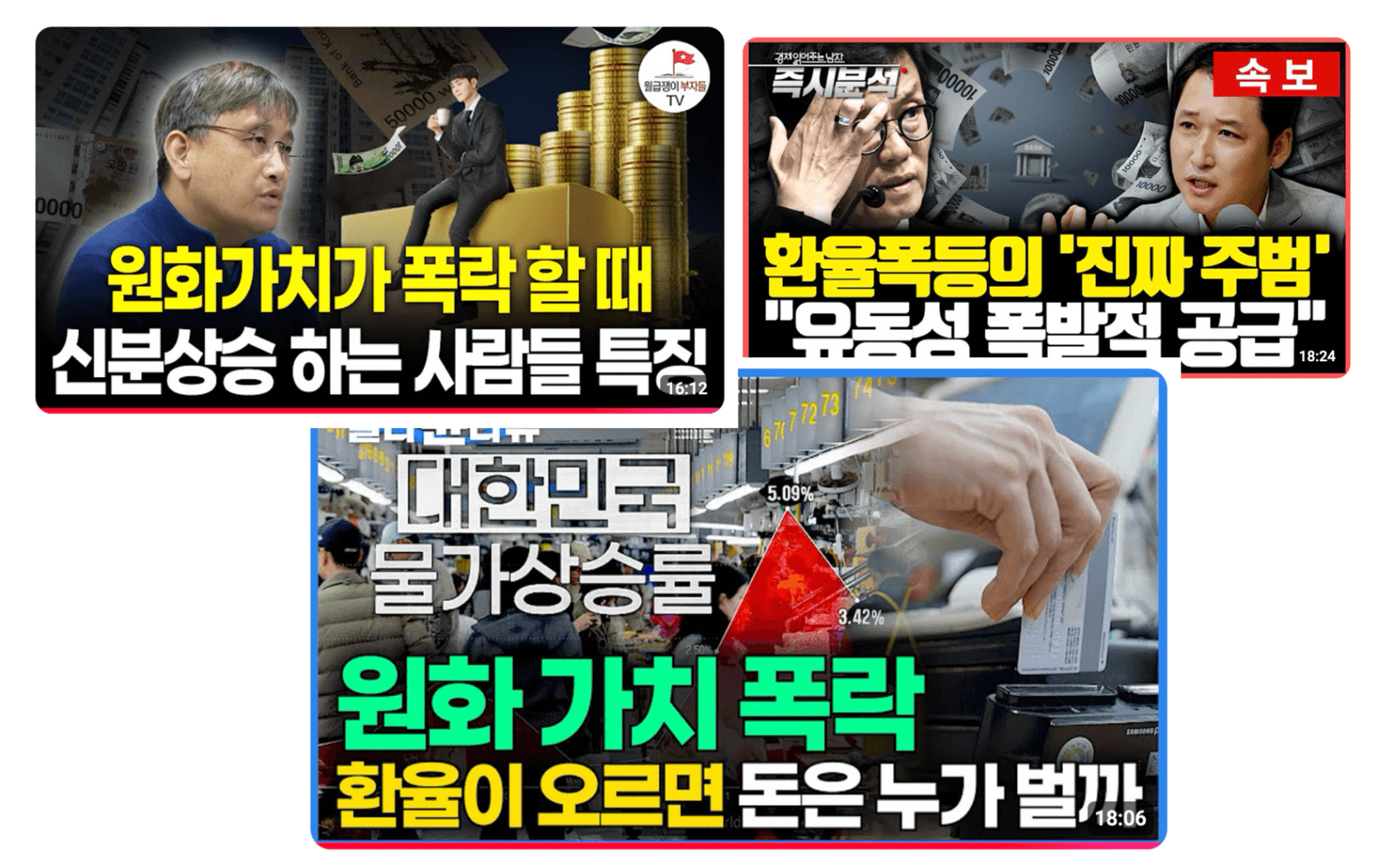 환율의 지속적인 상승 즉 원화가치 하락입니다.