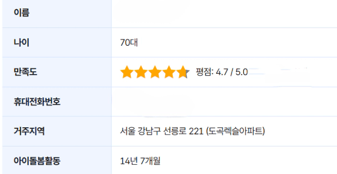도곡 렉슬에 거주하시는 돌봄 선생님