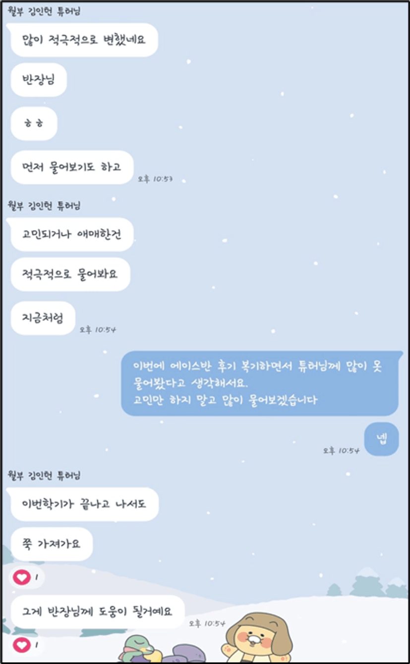 : 튜터님께서도 많이 적극적으로 변했다고 말씀해주셨고