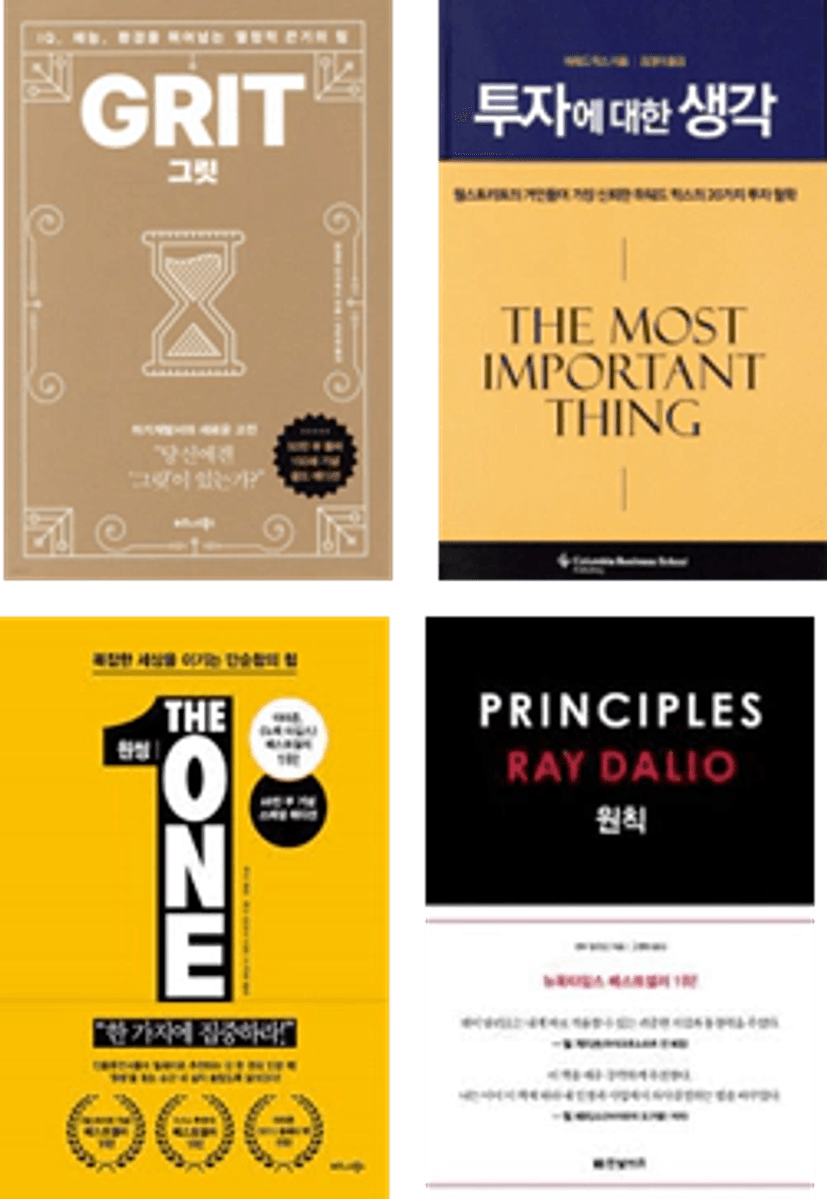 [독서] : 그릿, 투자에 대한 생각, 원씽(후기 작성중), 원칙 (독서 예정)