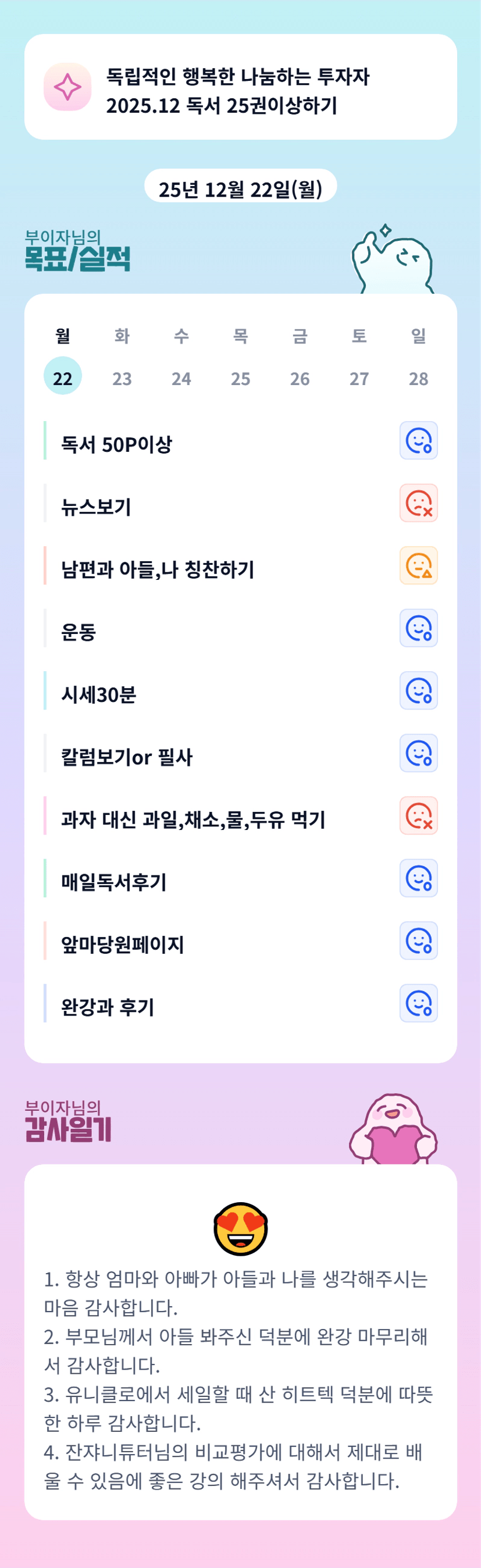 그릿의 아이콘 부이자님,, 루틴의 여왕이시군요 ㅎㅎㅎ