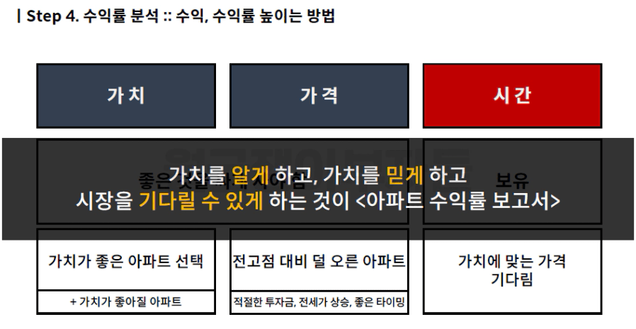 “수익률 보고서를 통해 비교 평가하여 상대적으로 저평가된 아파트를 찾는 것”