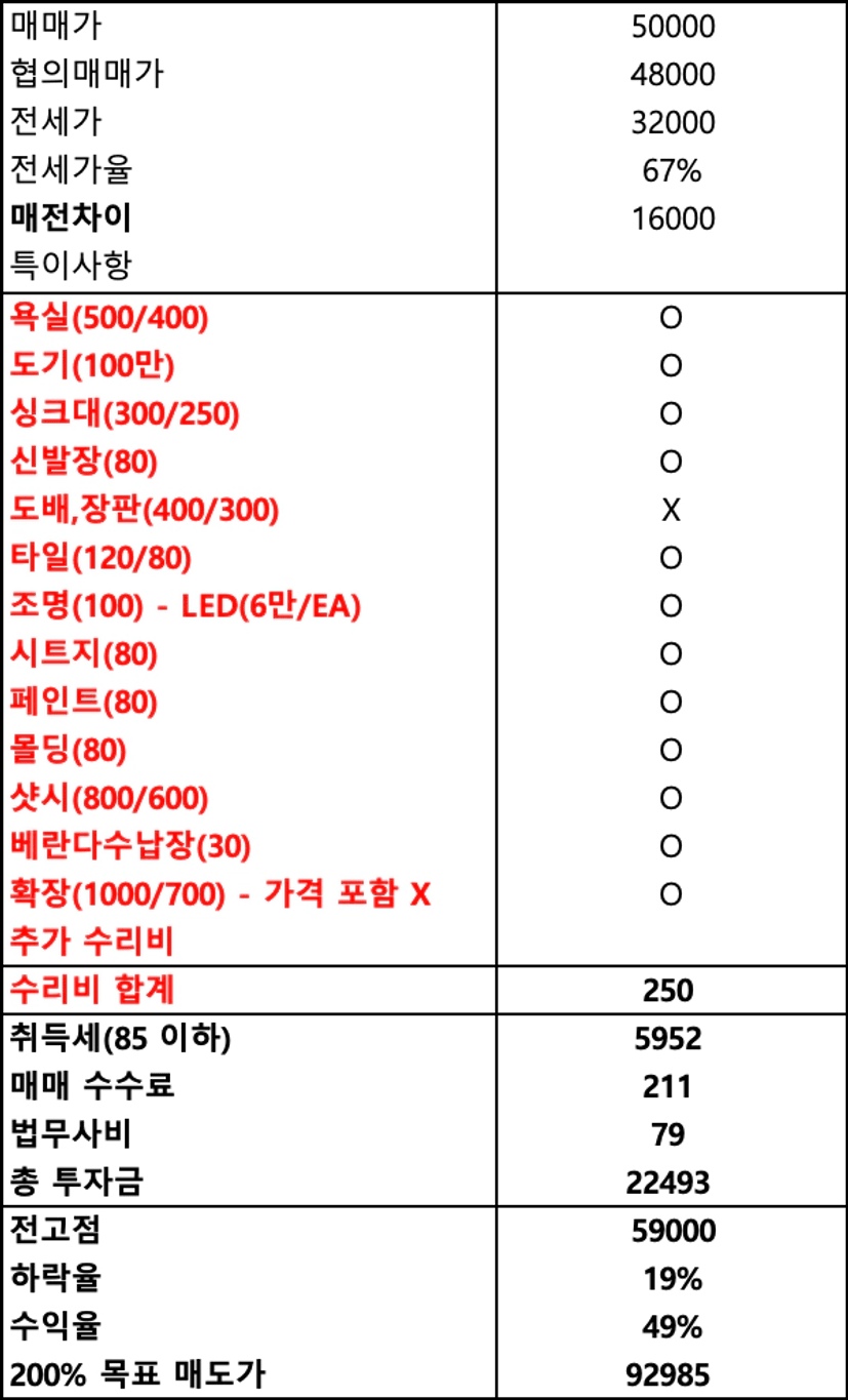 특히 구축일수록 수리비만으로도 투자 등급이 바뀌는 경우가 허다합니다.