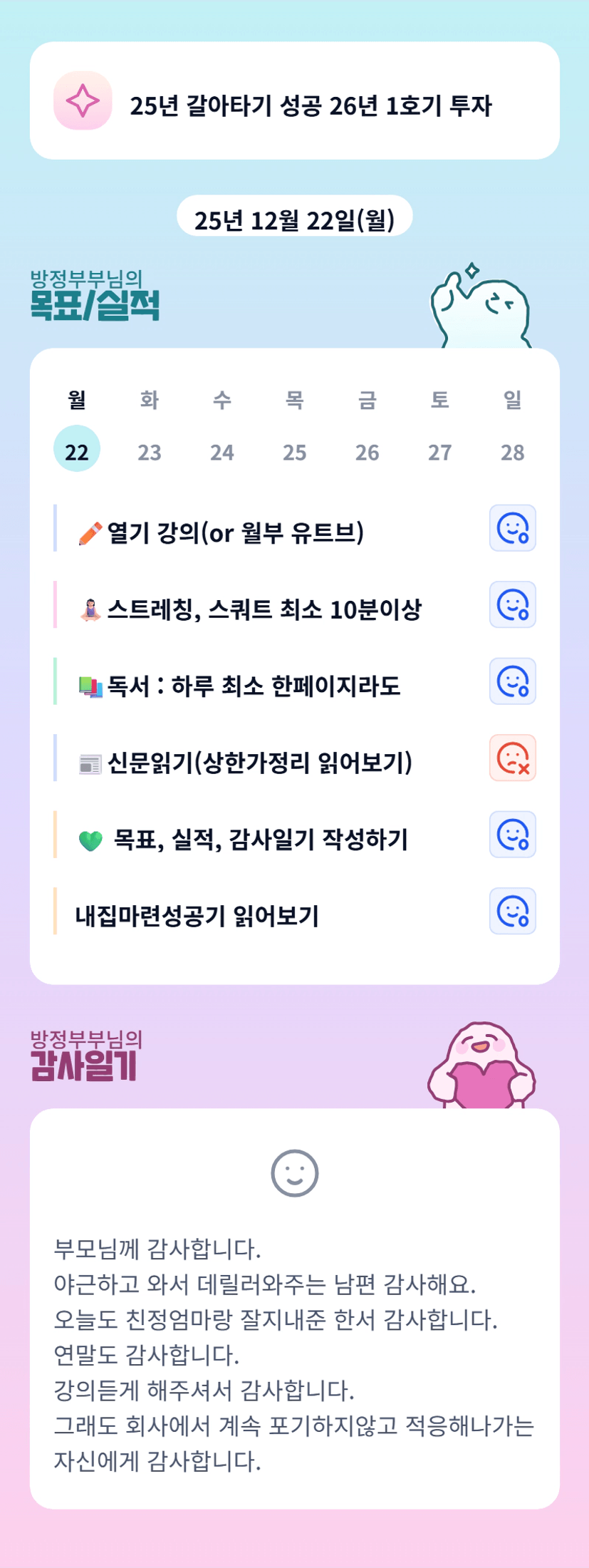 오늘도 너무 수고 많이 하셨습니다. 연말 마무리도 화이팅 하세요^^