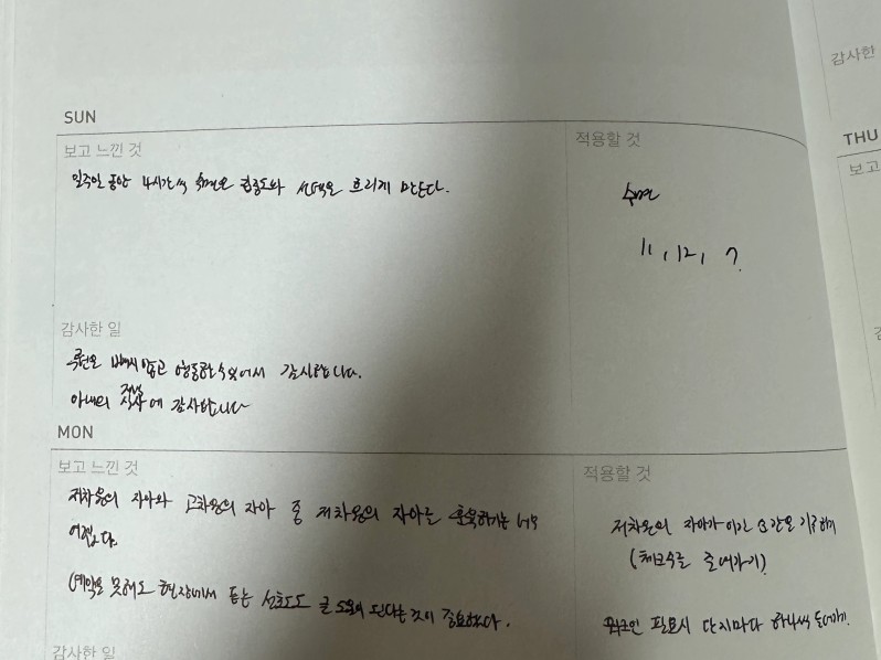우와~~ 수기 감사일기 멋져요 ㅎㅎ 오늘도 화이팅하세요!!