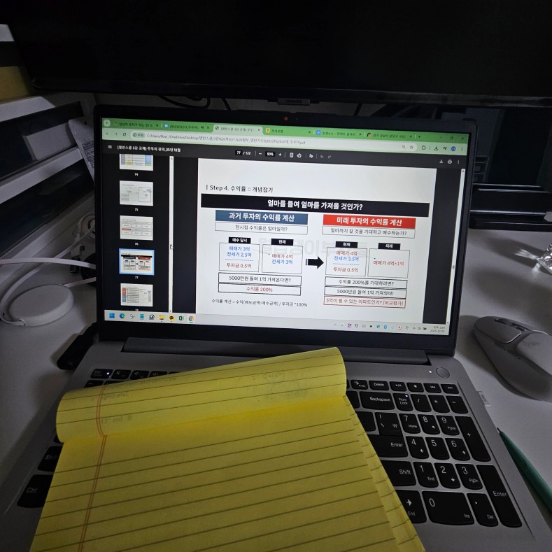 이번 강의를 듣고 원하는 투자지역에서 나만의 수익률 보고서 1개를 잘 만들어보자 정도로 결론을 내렸다.