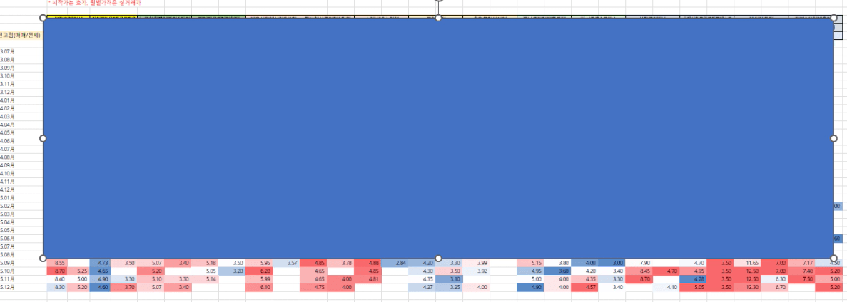 그동안의 임보를 보면서 앞마당 시세조사를 했고,