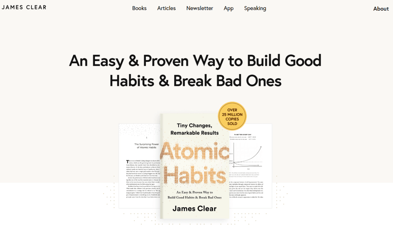 -제임스클리어는 고교 시절 촉망받는 야구선수였던 저자는 연습 중 동료의 야구 배트에 얼굴을 정통으로 강타당하는 큰 사고를 겪었다. 이 사고로 얼굴 뼈가 30조각이 났고, 왼쪽 눈이 튀어나와 실명 위기까지 왔으며, 심정지가 세 번이나 일어났다. 걸을 수조차 없었던 저자는 절망에 빠지는 대신 지금 당장 할 수 있는 아주 작은 일이라도 찾아 반복하자고 마음먹는다. 그 후 매일 걷기 연습을 해서 6개월 만에 운동을 할 수 있게 되었고, 6년 후에는 대학 최고 남자 선수가 되었다. 이 경험을 바탕으로 그는 자신을 인생의 나락에서 구해준 ‘아주 작은 습관의 힘’을 전 세계에 알리는 최고의 자기계발 전문가가 되었다.
