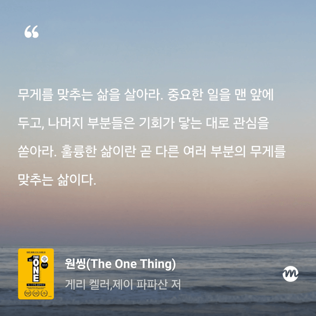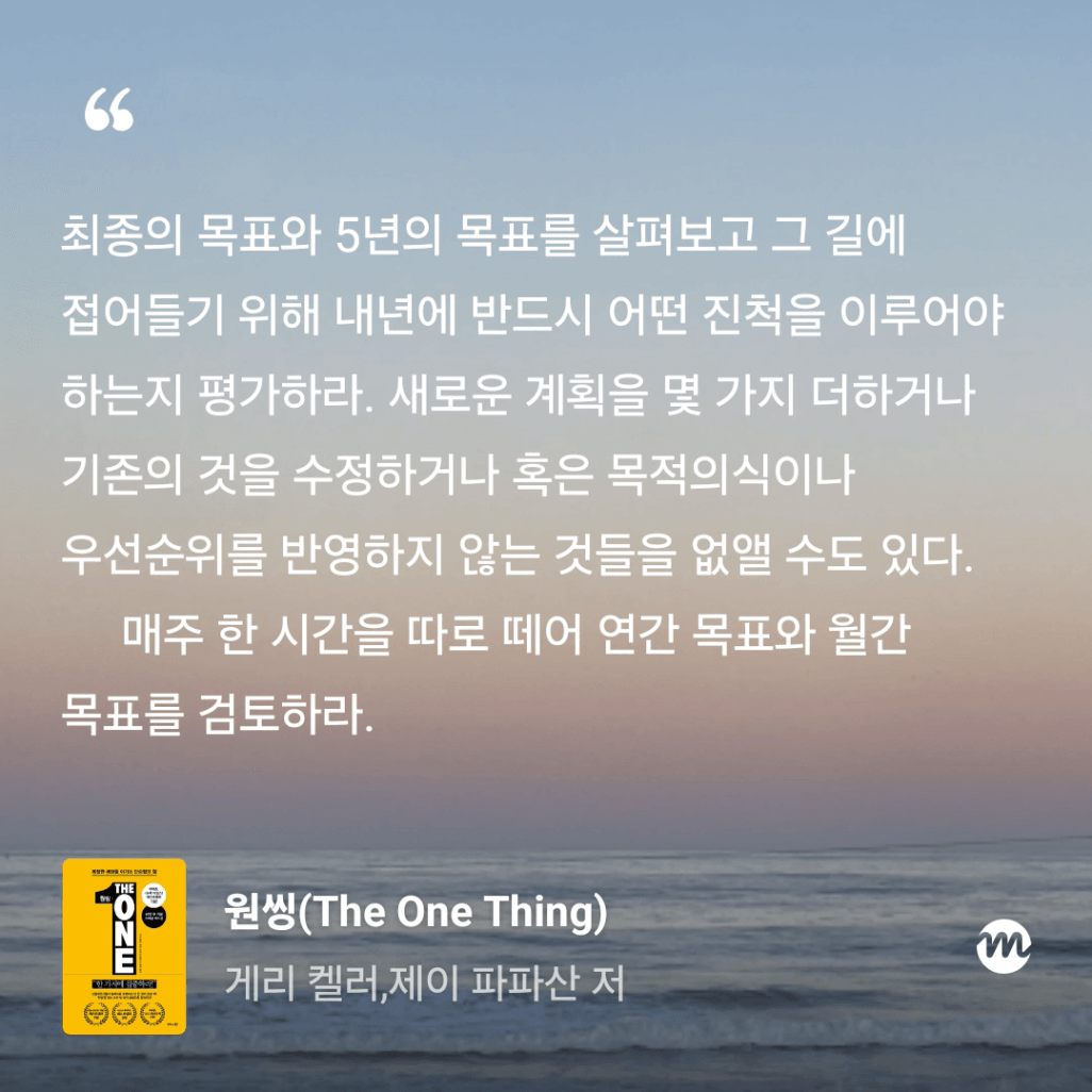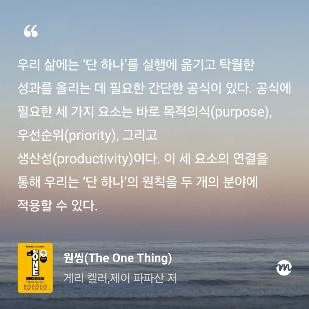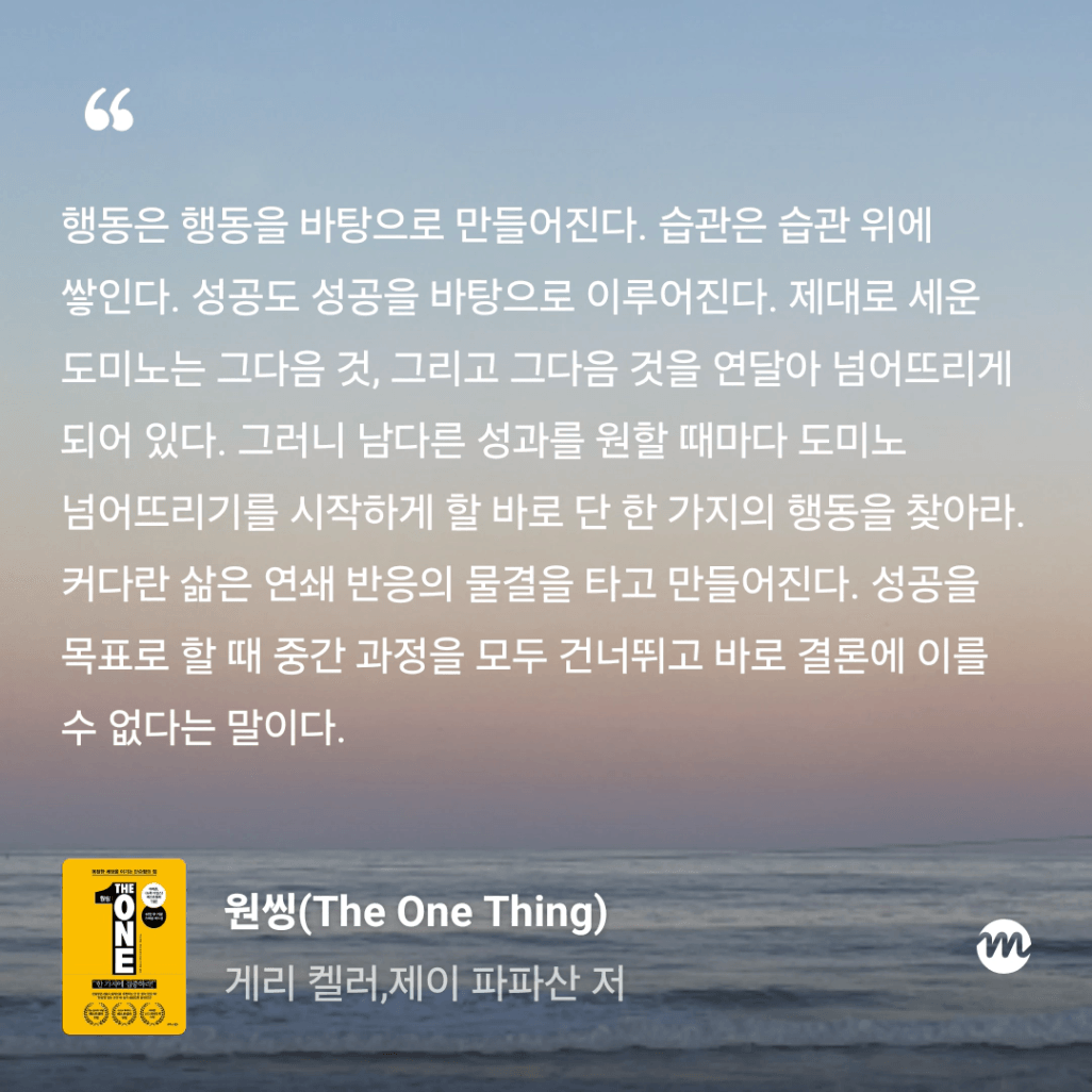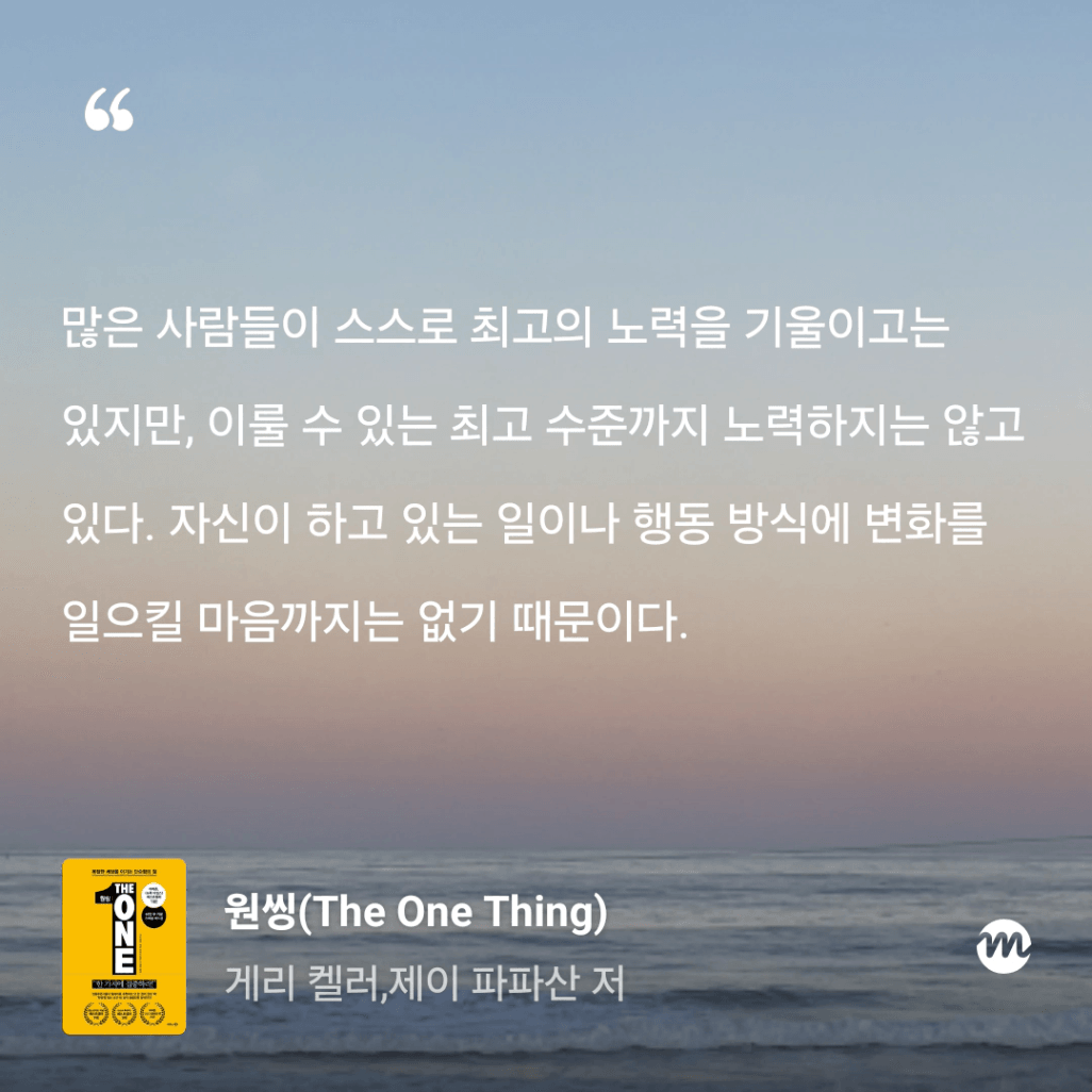 : 올해만 3번째 읽는 원씽. 10번은 읽은 것 같은데, 읽을 때마다 참 다르게 다가오는 책이다.