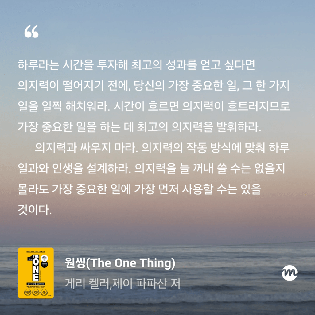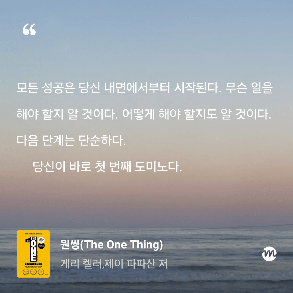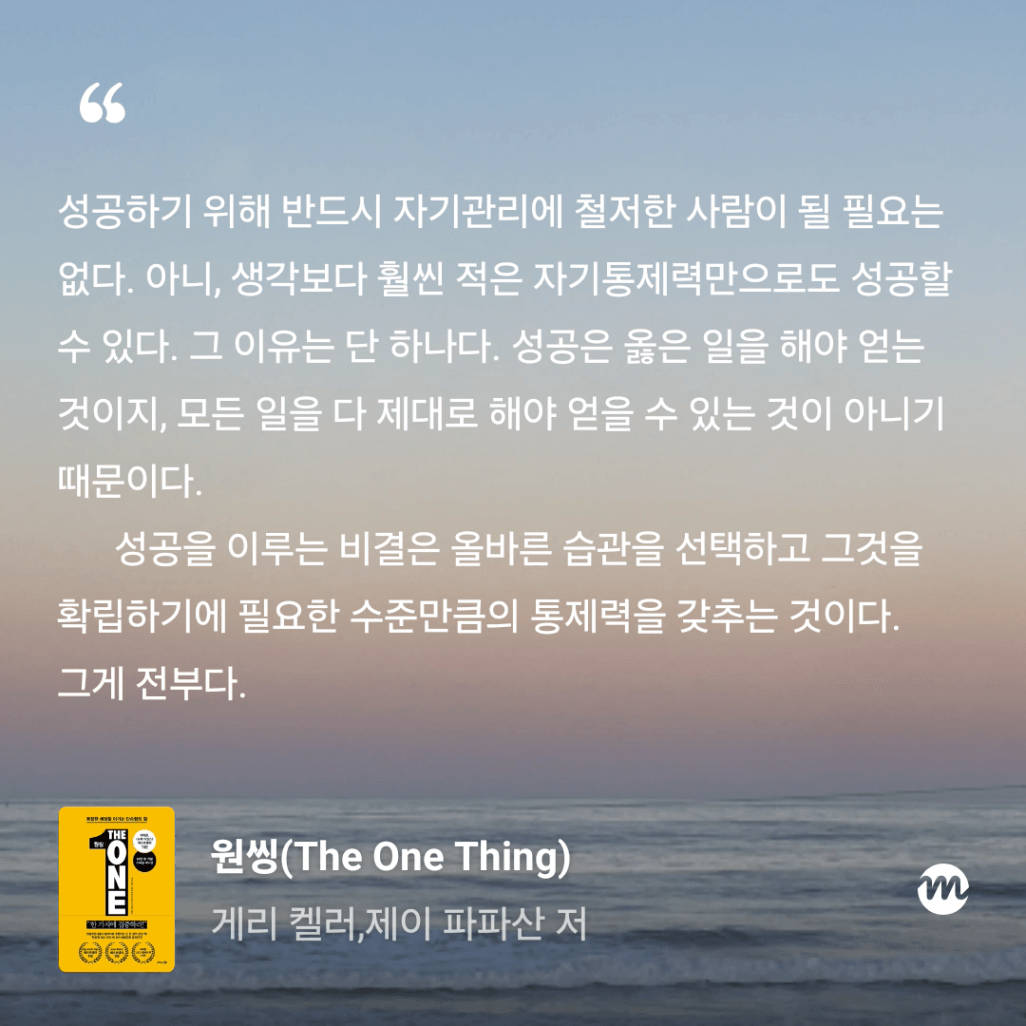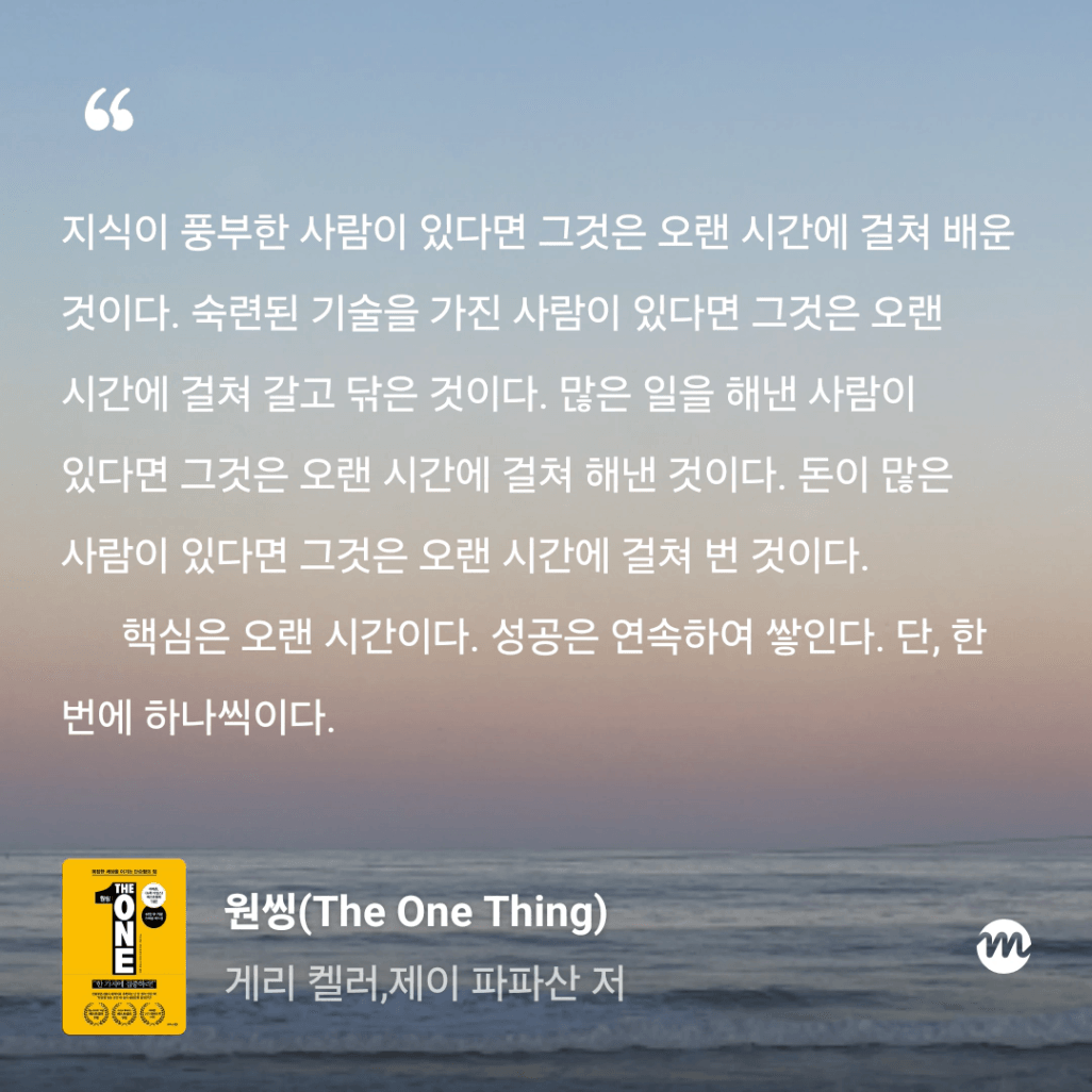 : 올해만 3번째 읽는 원씽. 10번은 읽은 것 같은데, 읽을 때마다 참 다르게 다가오는 책이다.