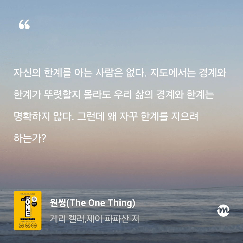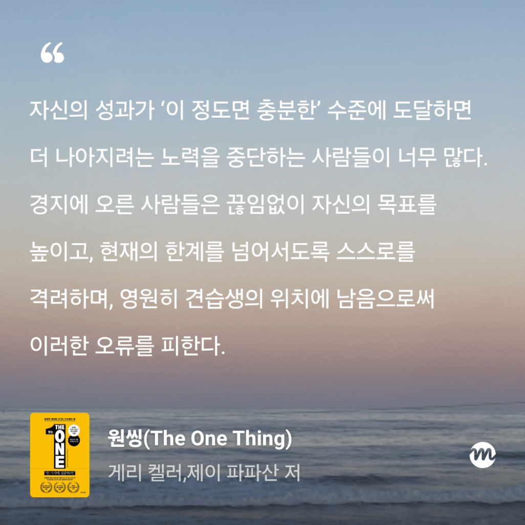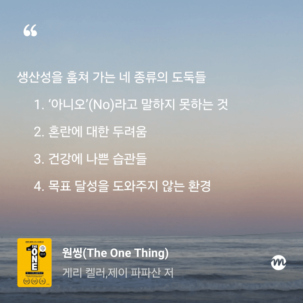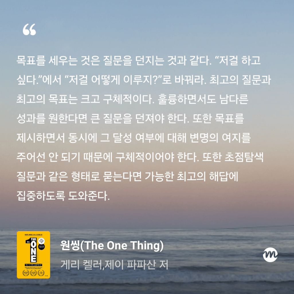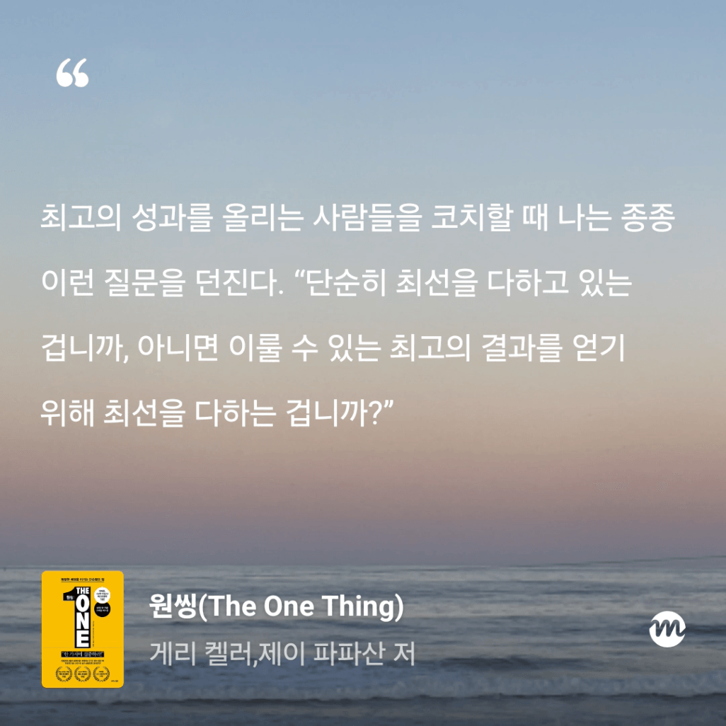 : 올해만 3번째 읽는 원씽. 10번은 읽은 것 같은데, 읽을 때마다 참 다르게 다가오는 책이다.