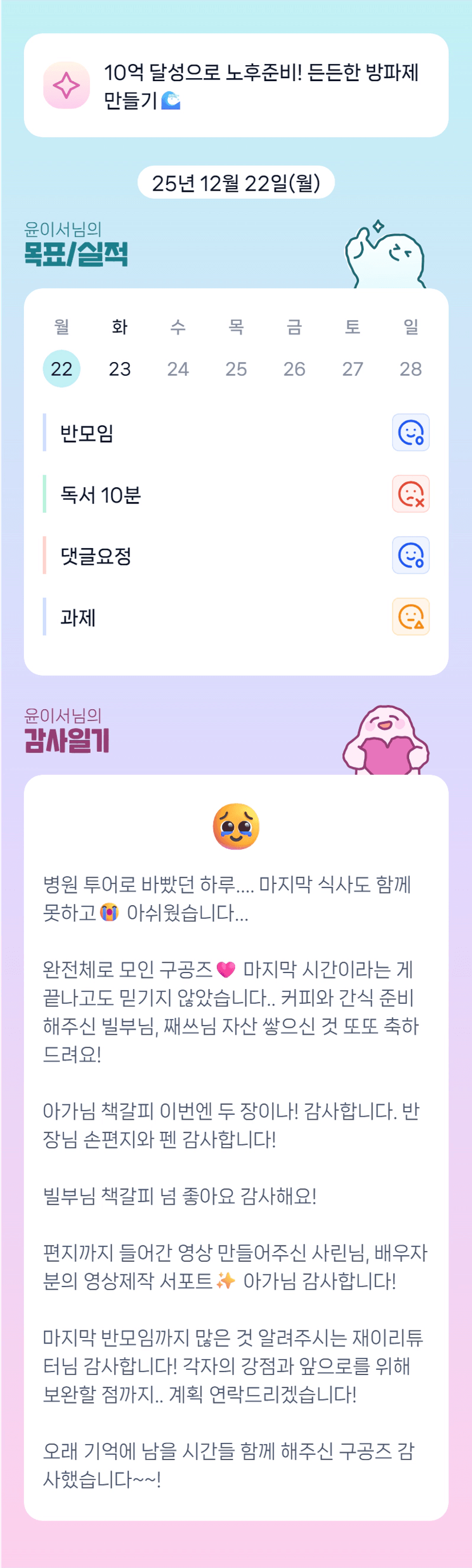 1년 2개월만의 첫 조장 지원, 따뜻한 한 달을 마치며💌 [지기23기 대구 ㄱ6남 수성구 아파트 4야조 윤이서]