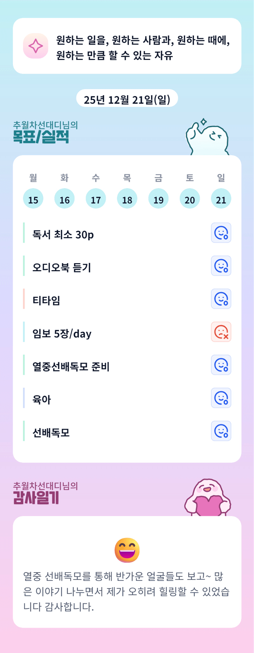 추디님 파이팅!! 얼마안남은 25년 잘 마무리해보아용 ㅎㅎ