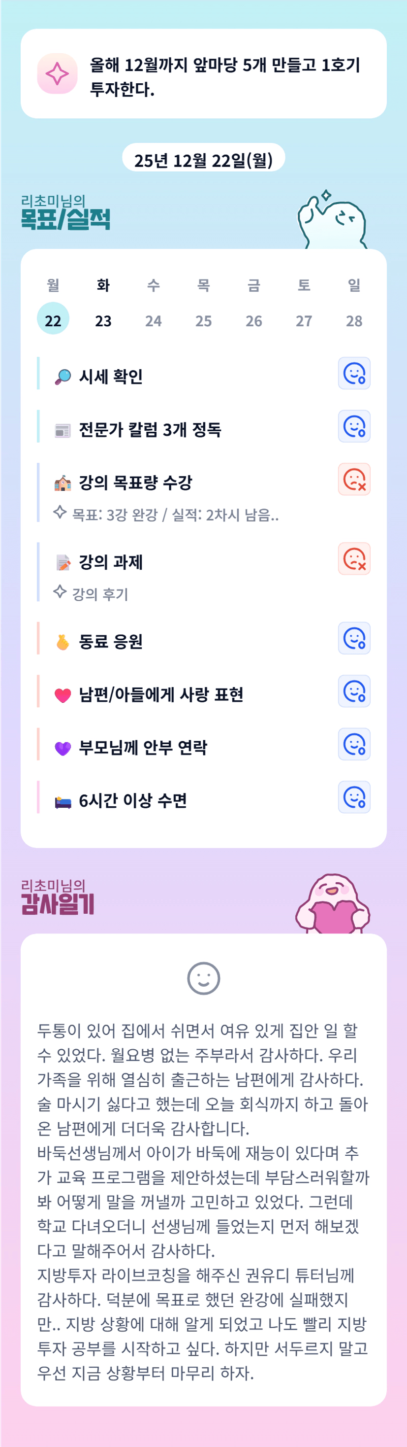 리초미님!! 오랫만에 댓글남기네요~ 언제나 꾸준하게 한발한발 나아가시는 모습을 보고 ~ 저도 자극을 많이 받고있습니다!! 3주차도~화이팅하시고.. 4주차강의까지 ~ 쭈욱~~~ 나아가시죠