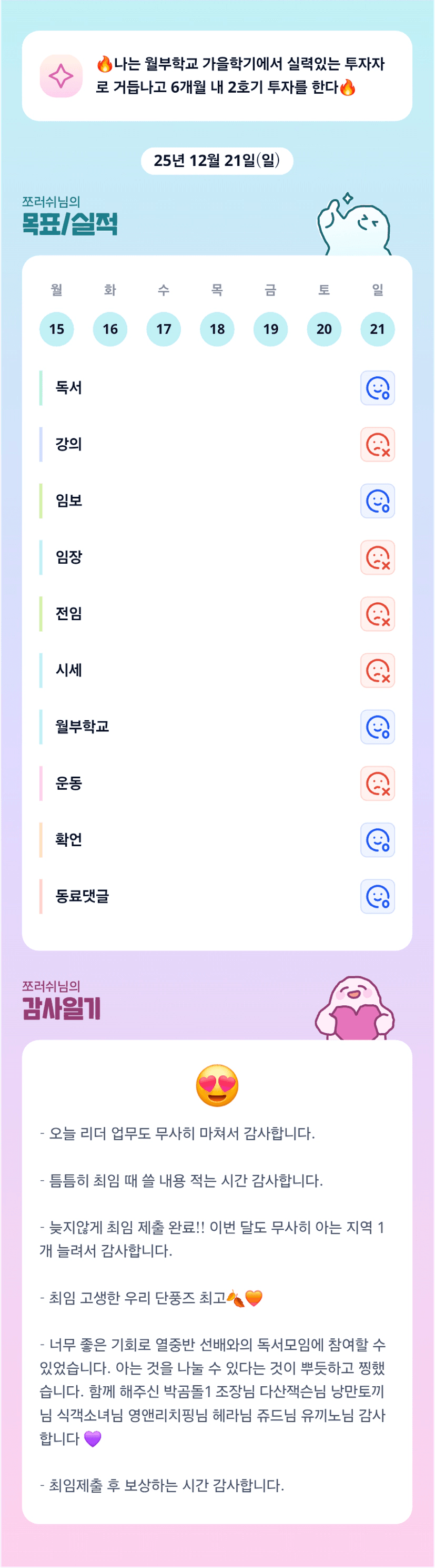 월부학교 끝이네요!! 그동안 고생 많으셨습니다!! 즐거운 크리스마스 보내세요!!^^