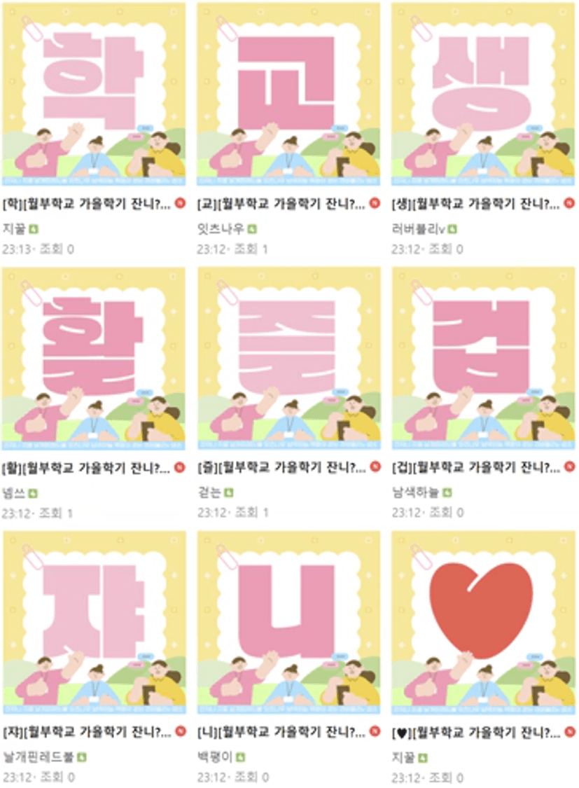 학교 생활이 고단하고, 무섭고, 내가 할수있을까- 사실 원래 작년 1년전만해도 첫 지투실때 튜터님께 학교를 왜 가야하죠? 하던 제가 1년만에 이렇게 학교에 오게 되었고, 학교생활을 하면서 또 첫 학교생활을 패널티없이 무사히 마칠수있었던 것은 올바른 방향으로 끌어주시고, 따뜻한 봄바람처럼 이끌어주신 잔쟈니 튜터님과 함께 했던 다채로운 우리 4반 반원동료분들이 계셔서 가능했던것같습니다. 혼자였다면 정말 절대 하지도 못했고 하려하지도 않았을거에요.
