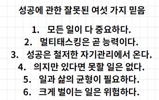 (원씽 책에 잘못된 6가지 믿음이라는 파트가 생각이 드네요!)