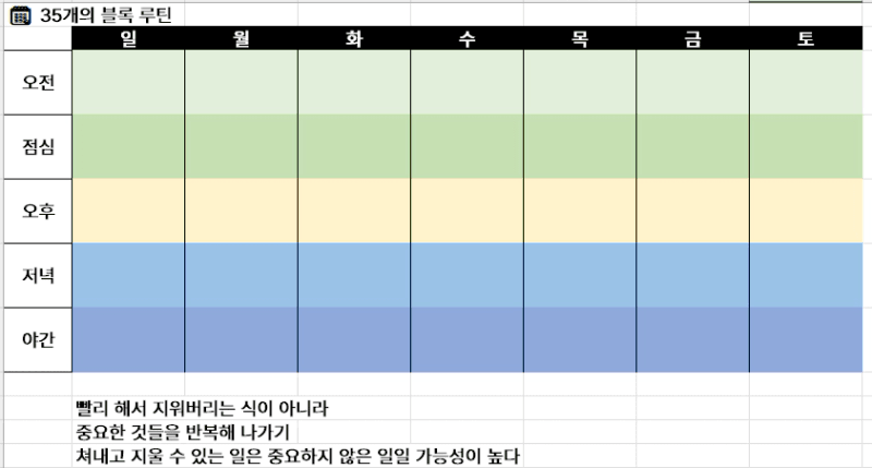 • 습관, 루틴의 중요성을 알면서도 중요치 않은 것들이 섞여있었던 것 같습니다.